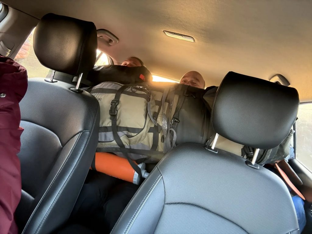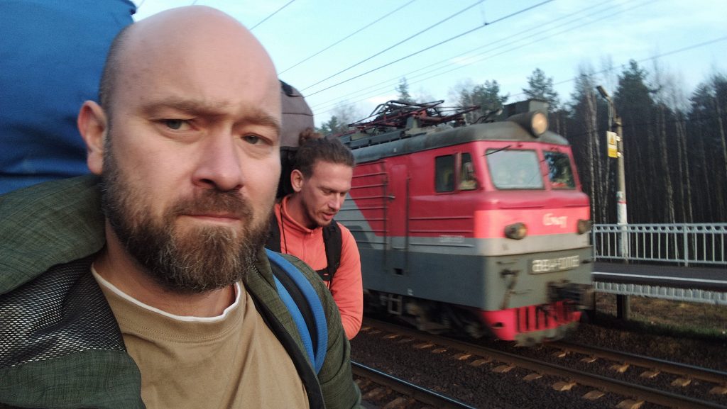 И наступило прекрасное туманное утро пятницы. Мы решили не тратить драгоценное солнечное время и поехать первой электричкой. Довезти нас до станции 49 км Казанского направления любезно согласилась супруга Саши Наталья. Отдельной, довольно комичной частью было размещение нас с тремя рюкзаками в её Hyundai Creta. Несмотря на довольно стеснённые обстоятельства, мы всё-таки влезли.
