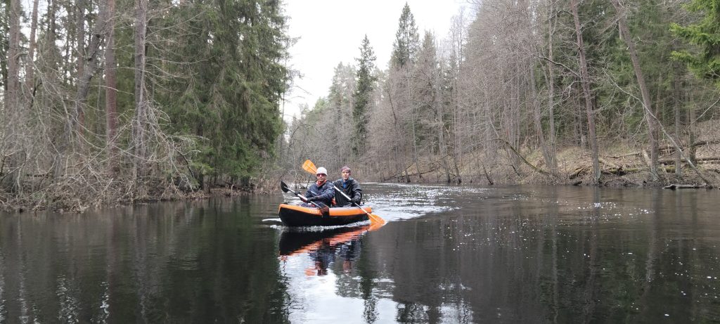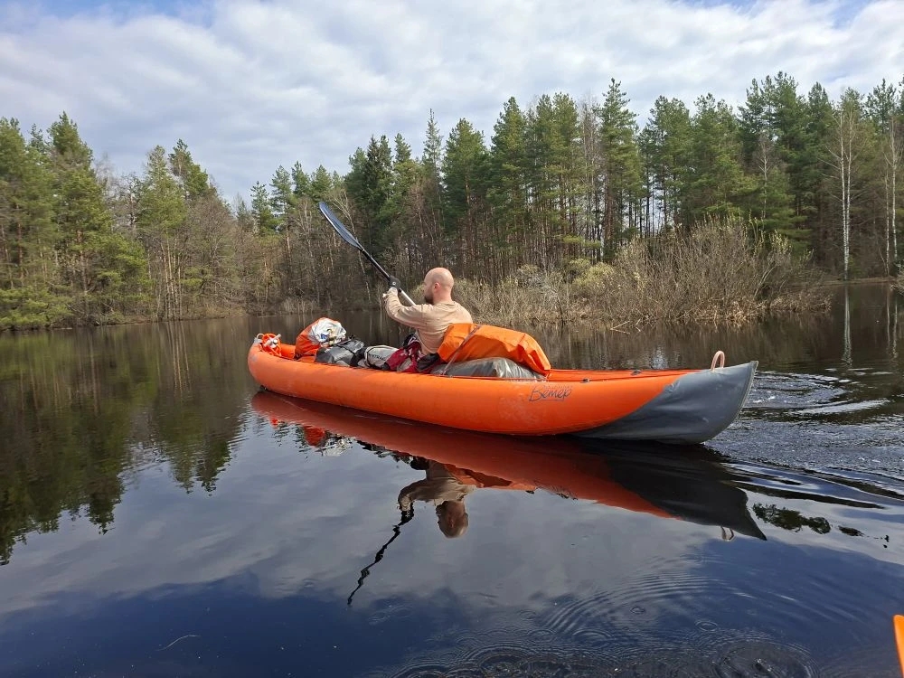 Наш флот состоял из двух надувных байдарок: декатлоновской «евротрёшки» itiwit длиной 3 м 80 см и вольноветровской полноразмерной «трёшки» – Одиссея 570. Меня давно подмывала мысль попробовать сходить на нём одному, чтобы протестировать «экспедиционный» формат. И, обсуждая рассадку, мы решили, что я пойду со всеми вещами на нём один, а Миша и Саша пойдут налегке на itiwit’е.