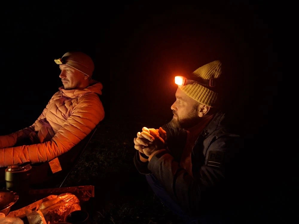 Не знаю, сколько было времени, когда я понял, что просто хочу спать. Пожелав всем доброй ночи, я влез в палатку, повесил налобник на крючок, чтобы при его бережном красном свете расположиться в мешке… Спустя некоторое время меня разбудил вопрос кого-то из ребят, куда положить что-то, что убирали от утренней росы. Понял, что отрубился, даже не выключив фонарь. Утвердительно что-то буркнув в ответ и дотянувшись до кнопки фонарика, я снова немедленно провалился в сон.
